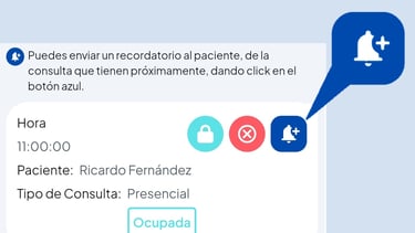 Con un solo click, podrás enviar recordatorios a tus Pacientes, de las consultas que tienen agendadas contigo y así evitar el ausentismo por olvido.