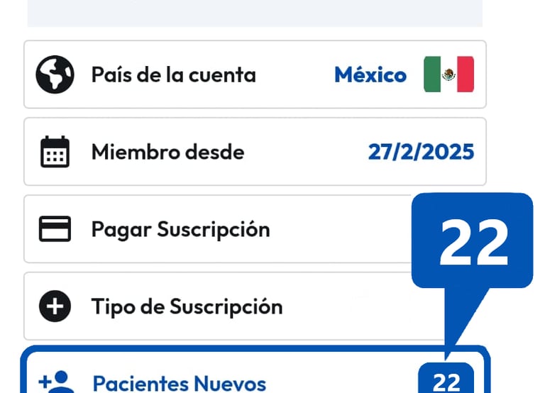 Tendrás estadísticas en tu perfil, del beneficio que te brinda tu suscripción, como: Número de Pacientes Nuevos, Cantidad de consultas agendadas en la app, etc...