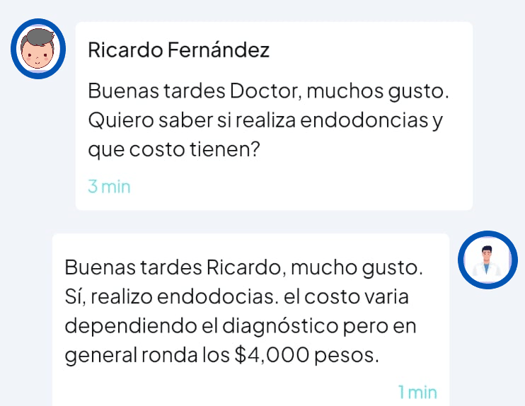 Podrás ser contactado por pacientes a través del chat interno de la app, para aclararles dudas acerca de los servicios que ofreces y los precios de los mismos