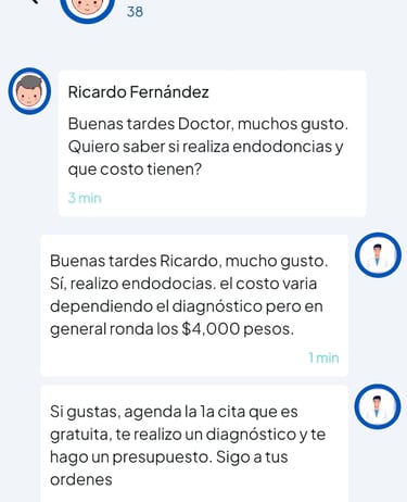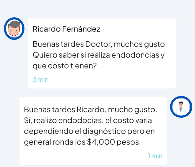 Inicia una gran relación con tus pacientes potenciales. Aclarales dudas a través del chat de la app